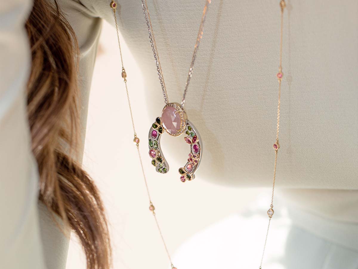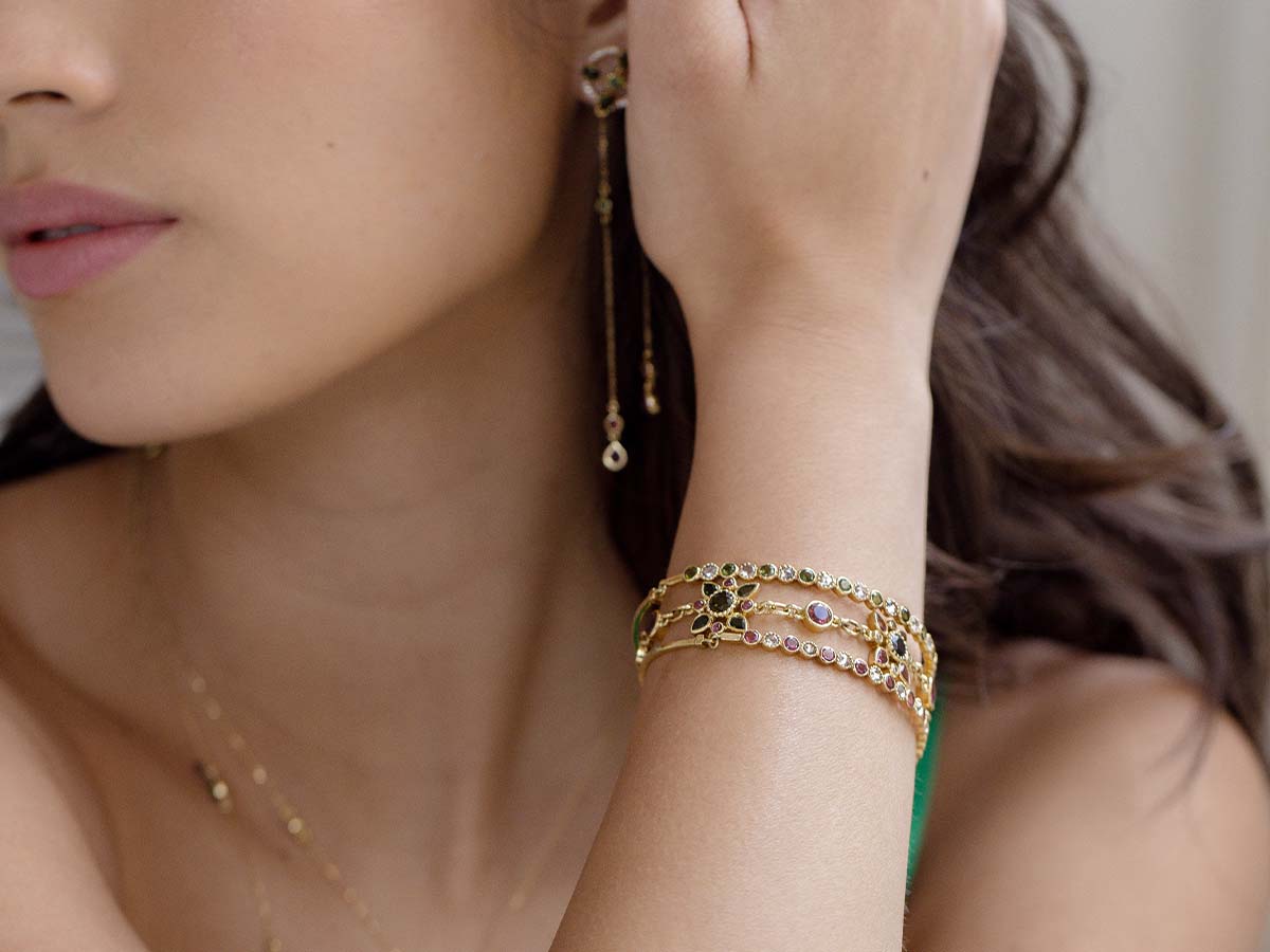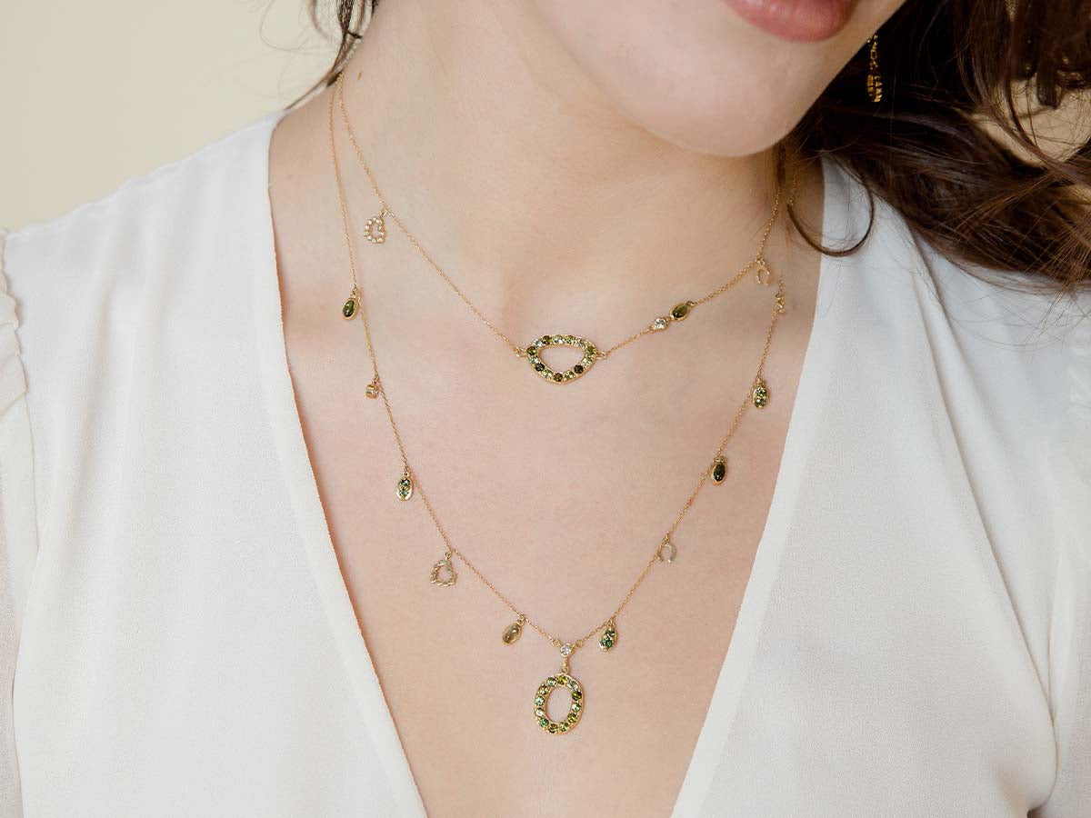 I thoughtfully created this collection where layering is at the heart of the design, beautifully showcases the luxury of 18k gold, adorned with diamonds and vibrant colored gemstones. It presents an enduring fusion of elements, encouraging you to whimsically layer and intermingle these pieces with any selection from our repertoire, whether you lean toward bold statements or delicate charms.